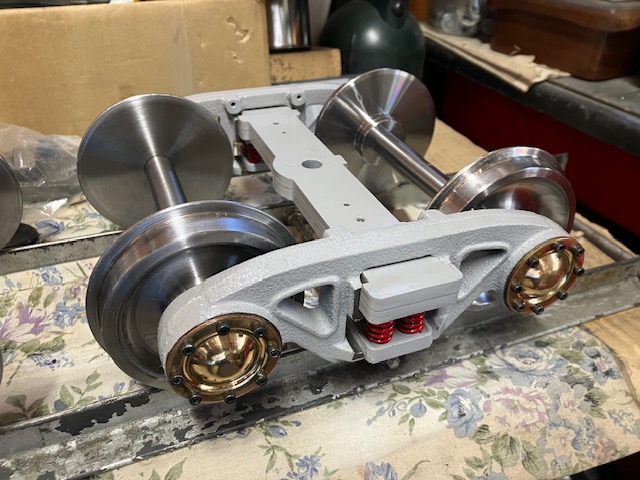 カーボルスターも板金で作り塗装を完了して完成しました。回転方向に使われているスラストベアリングも強度のあるボールタイプに交換しました。