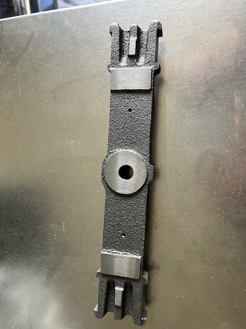 そこで、お得意のレーザー加工でボルスターを作りました。6㎜のSS400の鉄板から2枚切り出して重ねて使います。