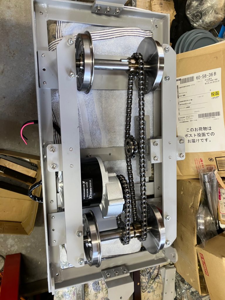 駆動は強度のある#35のチェーンを使用しテンション調整も可能です。この写真は改造前です。
