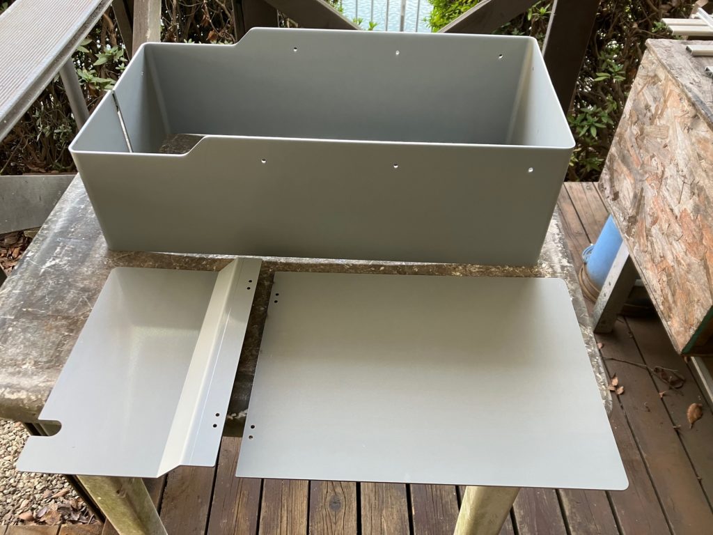 ボディーはお得意の板金加工です。2.3㎜のボンデ鋼を曲げ加工して作っています。